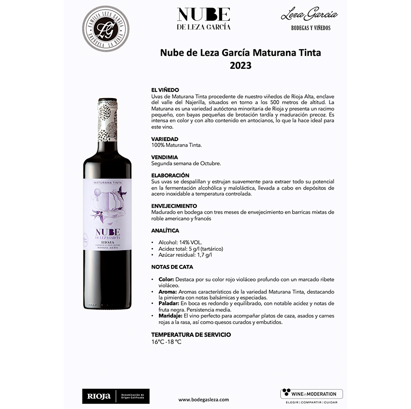 Vino tinto elaborado con Maturana Tinta, una variedad tradicional de Rioja que aporta personalidad y carácter. Presenta color intenso, aromas a fruta roja madura con ligeros matices especiados. En boca es equilibrado, suave y fácil de disfrutar, perfecto para carnes, tapas y platillos mediterráneos.